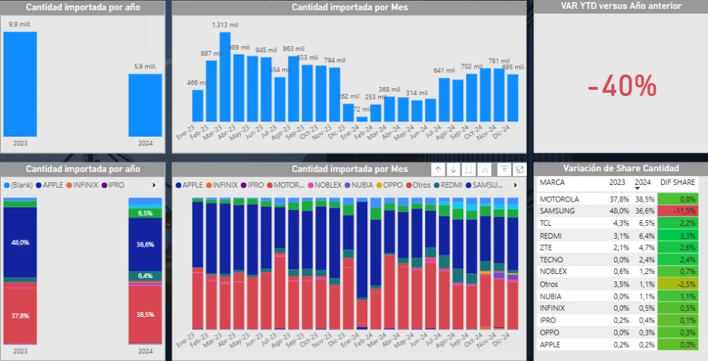 Evolución de Marcas con variaciones de Share en Cantidades y FOB